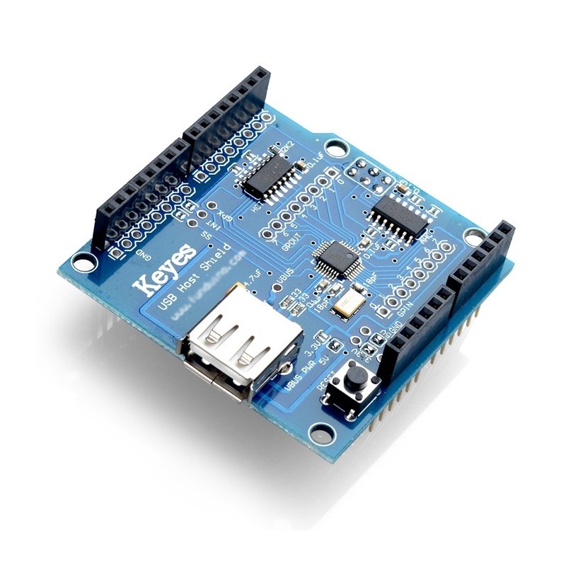 Плата расширения USB Host Shield 2.0 позволяет выступать Arduino в роли USB-хоста для USB-периферии: флешек, клавиатур, мышей, MIDI и прочего. С этой платой открывается масса новых возможностей для создания интересных устройств.
