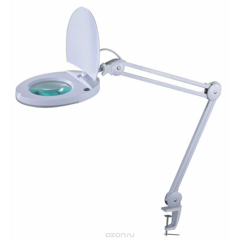 Лупа на струбцине круглая 8D с подсветкой с крышкой, белая REXANT